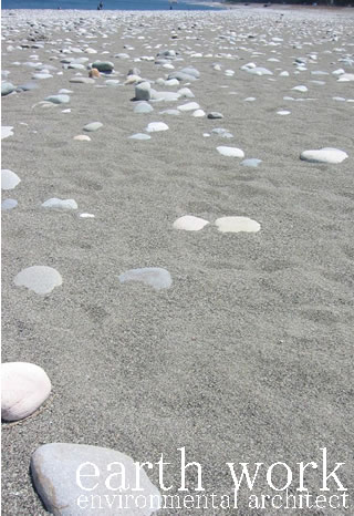 この海岸は砂浜ではなく角が取れた均等な石ころが多い海岸です。