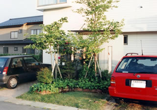 | 増築前 緑が多く雰囲気は良かったが冬季駐車スペースが泥だらけになってしまう | |||||||