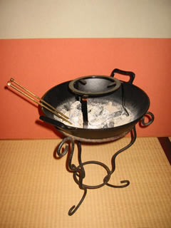 土台は植木鉢の足を利用し、鉢は南部鉄のなべを使用しています。陶器製の火鉢と比べ現代風の室内でも使えると確信できました。しかも安い。 | ||||||||||||||||